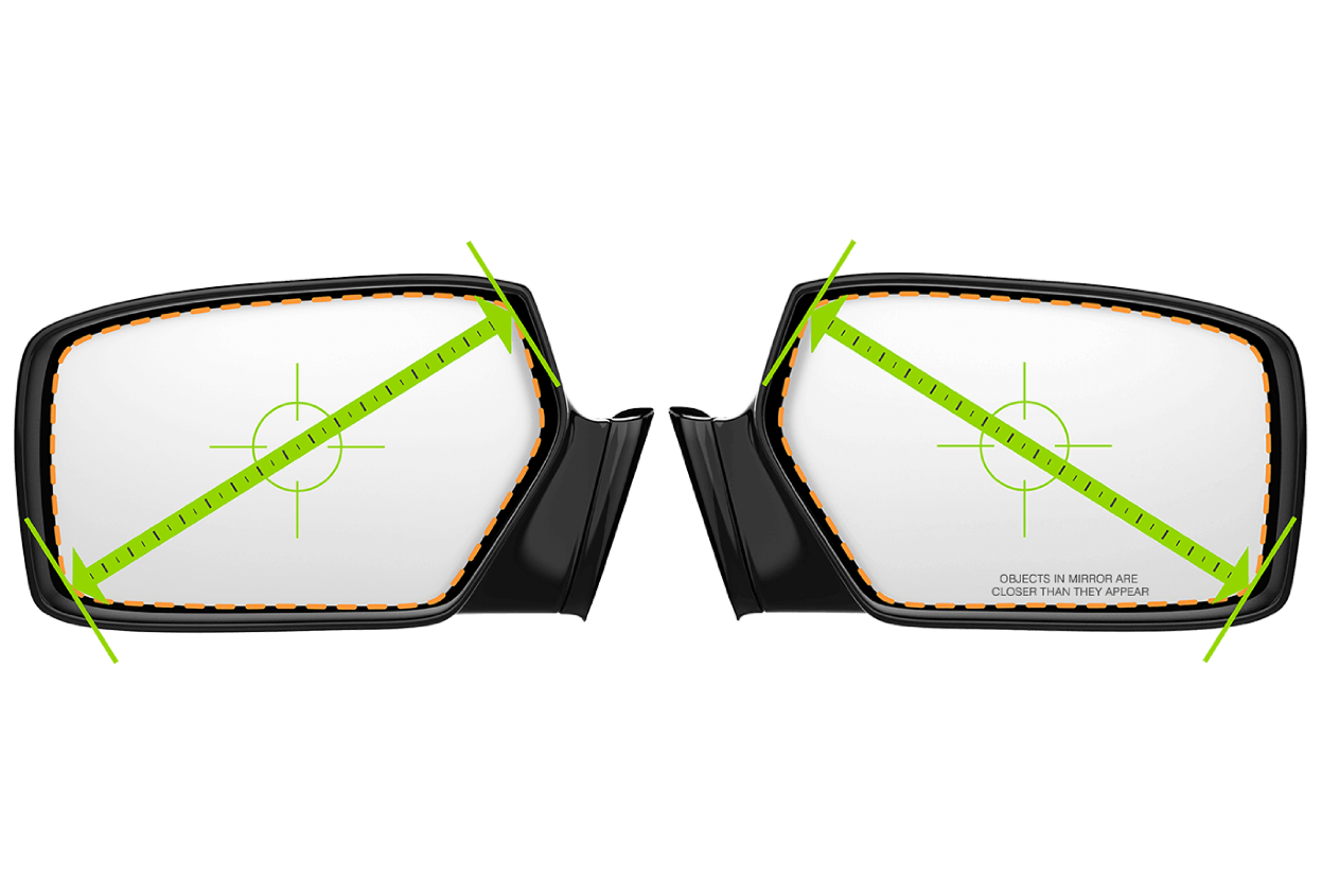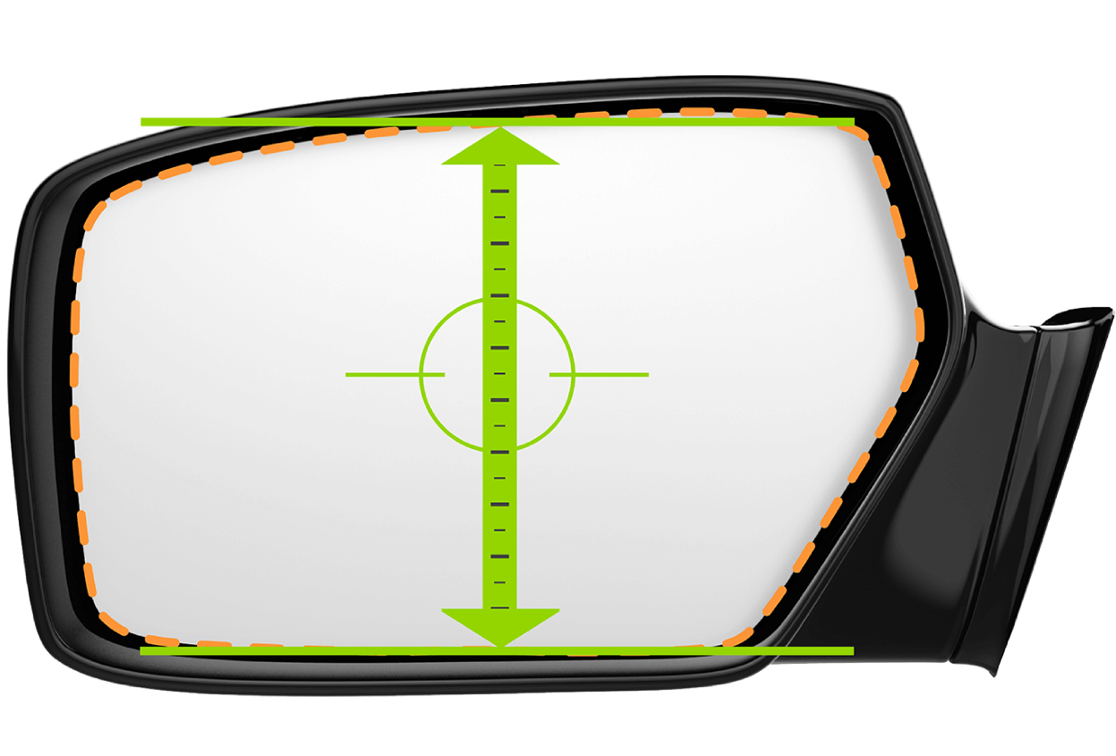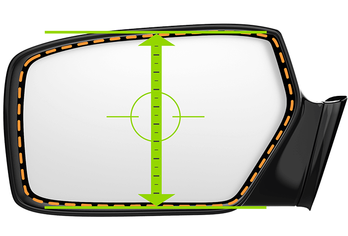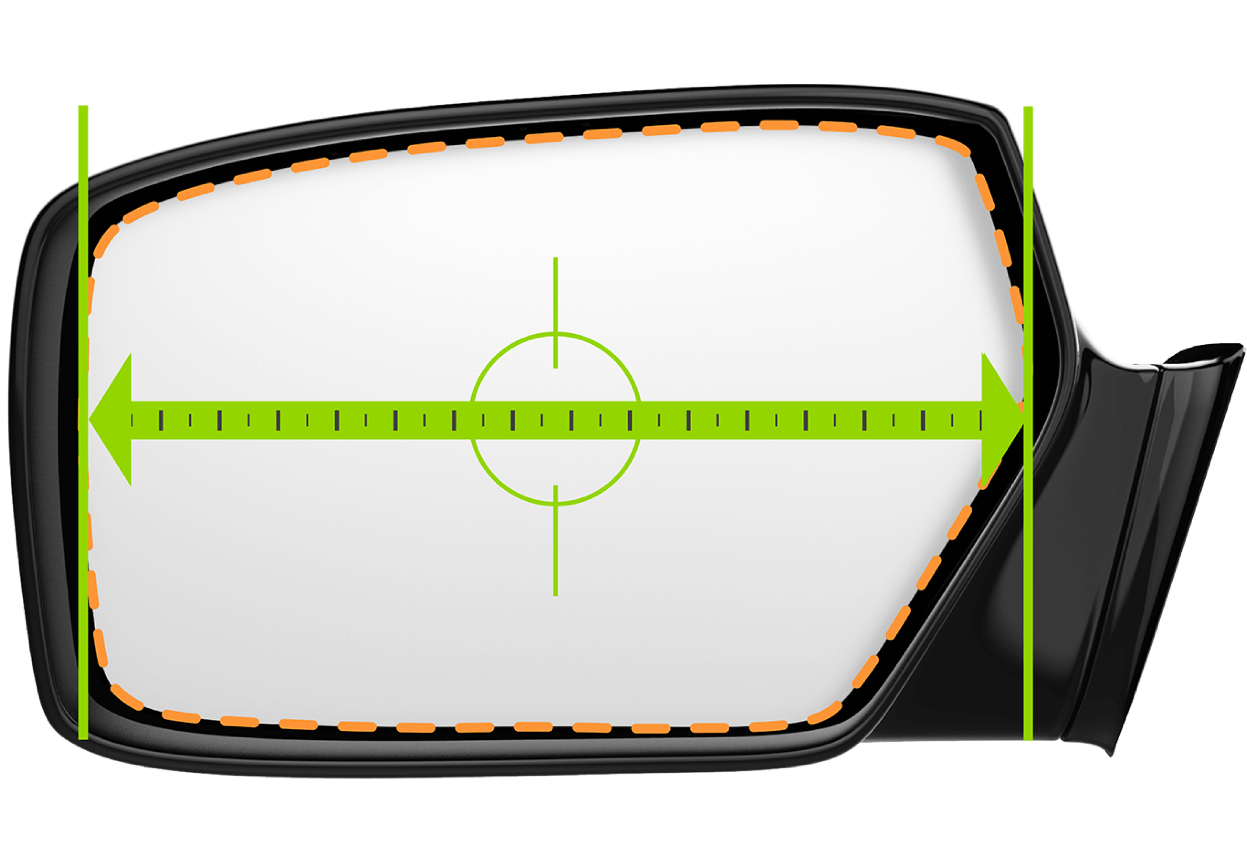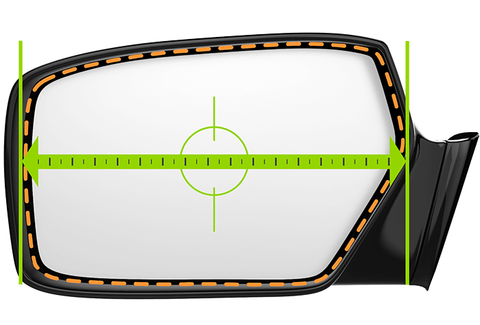 Measure your mirror glass. Measure horizontally from left mirror edge to right mirror edge.